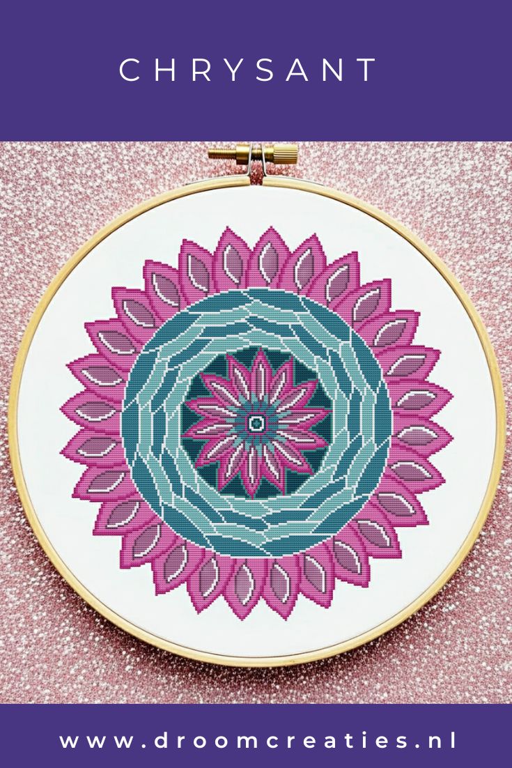 - afmeting mandala borduurpatroon Chrysant: 35 x 35 cm – 189 x 189 kruissteken