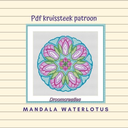 • afmeting mandala borduurpatroon Waterlotus: 25,5 x 25,5 cm – 139 x 140 kruissteken
